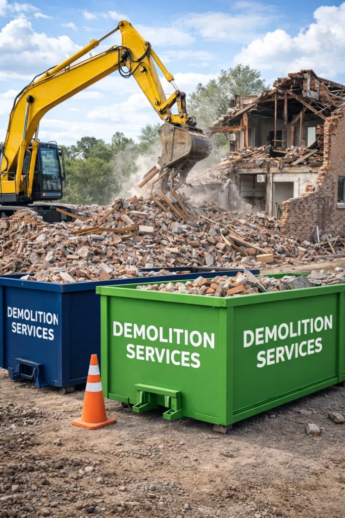 Yes — our licensed and insured dumpster rental company handles all demolition debris removal, from small dumpster rental near me jobs to 40 yard dumpster rental projects.