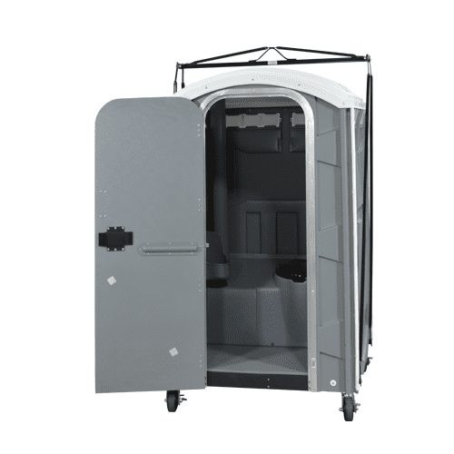 The crane lift portable toilet unit, a heavy-duty and hoistable solution for remote, elevated, or hard-to-reach job sites. This unit features reinforced lifting brackets, impact-resistant construction, and a self-contained waste tank with leak-proof seals.