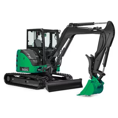 - 11k lb mini excavator w/ cab rental delivering max digging force of 9,442 lbs (depending on model)