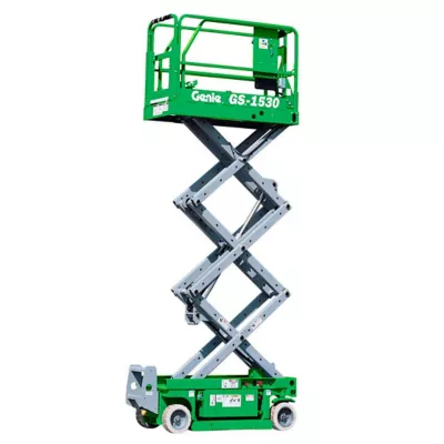 - 15’ electric scissor lift rental reaches up to 23’ working height