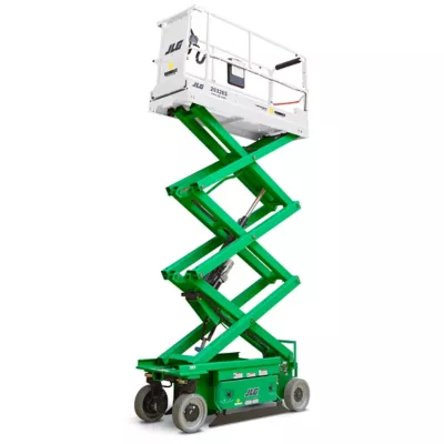 - 20’ electric scissor lift rental reaches up to 26’ working height