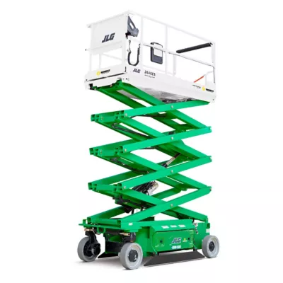 - 25’-26’ wide electric scissor lift rental reaches up to 32’ working height