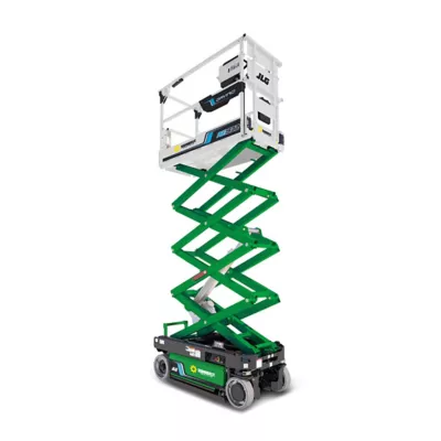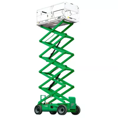 - 40’ wide electric scissor lift for semi-rough terrain (SRT) reaches up to 46’ working height