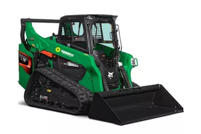 - Track skid steer rental with up to 2,100 lbs operating capacity for heavier material movement